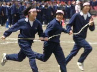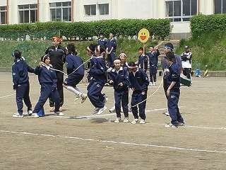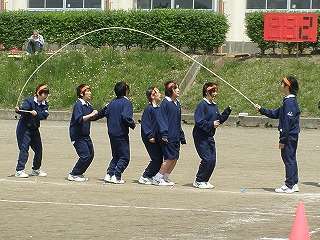※13日(水)に行われた「体育祭総練習」女子長縄リレーの様子です。