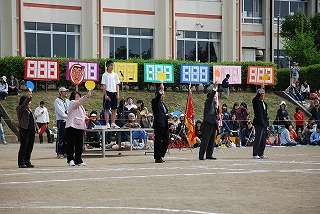 緑組団(5組団)の団長は、川島君。黄組団(7組団)の団長は、佐藤君。団長のかけ声の下、まとまって応援に取り組みました。