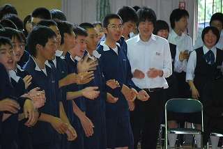 ・『KEY stone』の2人が歌っているのを見て気分が明るくなりました。落ち着いた曲、とっても明るい曲、全く違うのにうまく歌えていて感動しました。質問コーナーではいがいな面が見れておもしろかったです。(1の5 女子)