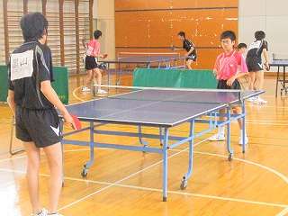 5月30日(土)厨川活動センターで「玉山中学校」と練習試合を行いました。団体戦1回目は3−2で勝ち、2回目は2−3で負けました。3年生が1名しかいないため卓球を始めて2ヶ月の1年生も練習試合に参加しました。