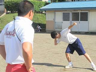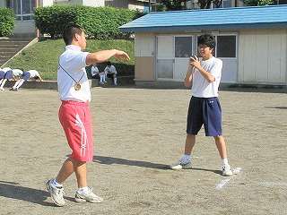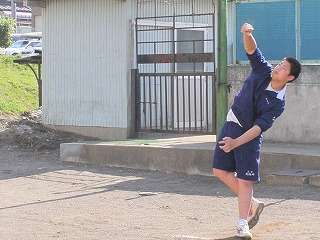 ※砲丸投げ練習をする2年生の三浦君と3年生の佐々木君です。