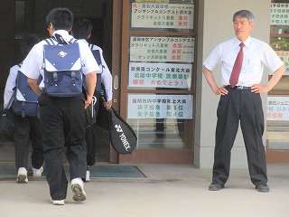 衣替えが終わりました。暑い日になりそうな朝です。校長先生も半袖Yシャツで生徒にあいさつをしています。名札忘れがまだまだいます。朝のうちに自分で確かめましょう。男子の制服は毎日交換しますので、朝確認をしましょう。