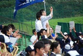 全校応援で野球は惜しくも3位。全校が応援で頑張りました。