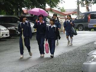 明日24日(水)、学校はお休みです。25日(木)は3時間授業で放課になります。 ※6月23日(火)登校する生徒の様子です。