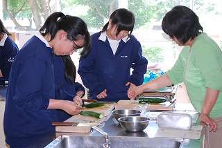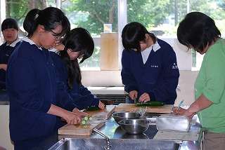 なにやら調理室から楽しそうな声が☆キュウリの輪切りのテストですか?(2年6組編)