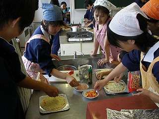 6月25日(木)の放課後、2年5組は親子レクでピザ作りに挑戦しました。
