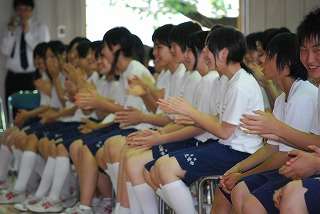 ハンバーグの店ベル初代店長で「びっくりドンキー」でおなじみの株式会社アレフ顧問の佐々木重政さん講演会が北陵中体育館で行われました。7月6日の11時から講演会が始まりました。『明るく笑顔で元気よく』から始まり、「しげちゃん」と呼んでください。趣味の手品やカメラ、エアーギターなどを披露していただきました。