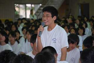 とても明るい人で小さいときは病弱だったなんて信じられません。明るく笑顔で講演会をしているところを見ると、仕事場でとても「愛想のいい人なんだなぁ」と思いました。目標を持って生きていくことを学び、私自身目標を持って生きていきたいと思いました。今度食べに行きたいです。(2年女子)