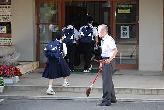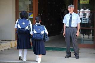 ※7月14日(火)笑顔で登校する生徒の様子です。県中総体も間近です。