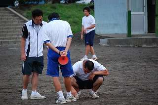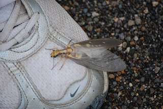 朝のトレーニングで指導中、三浦先生のズックになにやら怪しい虫がくっつき、歩いても歩いても離れようとしません。みんなで見ましたが、「何の虫?」「これで完全体なの?」といっているうちに飛んでいきました。「あ〜飛ぶんだ!」でした。何の虫か知っている方教えてください。