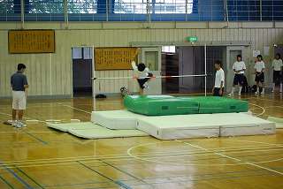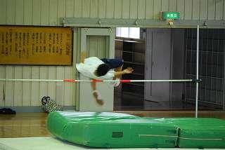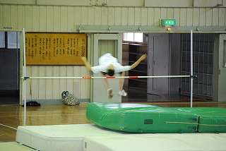 走り高跳びの練習は、体育館での練習です。
