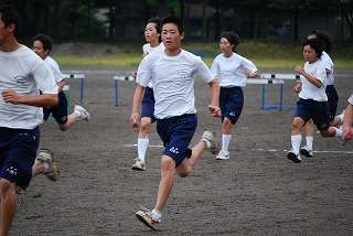 ※8月3日(月)体育館の先生方がついて陸上練習の様子です。