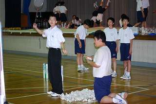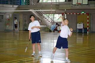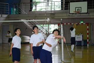 ※7月21日(火)上級生に相手をしてもらっている男子バドミントン部の1年生の様子です。