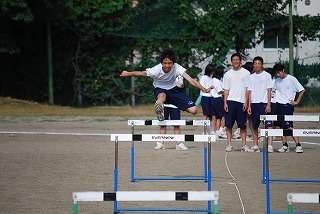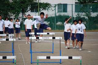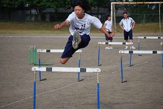 ※8月5日(水)陸上練習の様子です。ハードルの選手候補が練習をしています。暑い中、自分の限界に挑戦です。