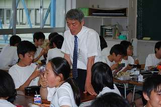 校長先生が7月8日(水)の昼食時間に1年6組にお邪魔し、話をしながら楽しいひとときを過ごしました。