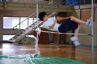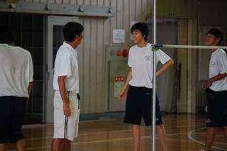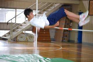 ※8月5日(水)陸上練習の様子です。走り高跳びの選手候補が練習をしています。暑い中、自分の限界に挑戦です。