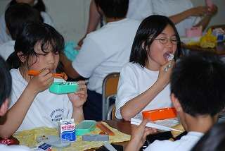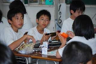 校長先生が7月8日(水)の昼食時間に1年6組にお邪魔し、話をしながら楽しいひとときを過ごしました。