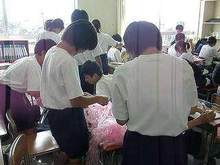 ※8月24日(月)市中陸上で使うポンポンを学級で作る様子です。