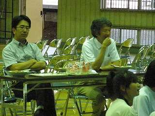 8月22日(土)の夕方、吹奏楽部が体育館で練習中でした。校舎内にはカレーの匂いが充満していました。「何かあるんですか?」の問いに「年に1回、お母さん方がカレーを作り、保護者の方々や卒業した先輩達を招いて、自分たちの演奏を聴いてもらう機会があるんです。」これが、吹奏楽部の『カレーの会』なそうです。演奏前に腹ごしらえです。