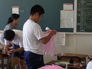 ※8月24日(月)市中陸上で使うポンポンを学級で作る様子です。