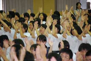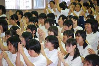 ※8月25日(火)の放課後に行われた全校応援練習の様子です。
