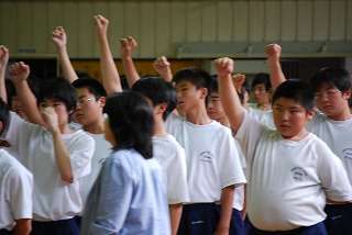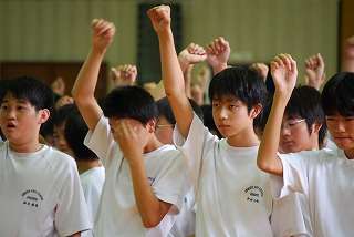 ※8月25日(火)の放課後に行われた全校応援練習の様子です。