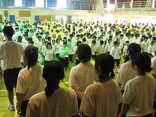 ※8月26日(水)の放課後に行われた全校応援練習の様子です。