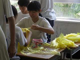 ※8月24日(月)市中陸上で使うポンポンを学級で作る様子です。