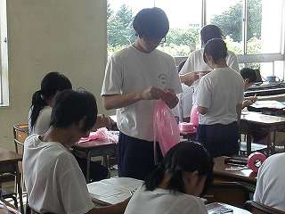※8月24日(月)市中陸上で使うポンポンを学級で作る様子です。
