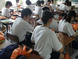 8月24日(月)の6校時、全校で応援用の小道具「ポンポン」を作りました。体育祭の組団の応援色のポンポンを丁寧に作りました。今年も7色のポンポンできれいに、しかも踊って応援します。