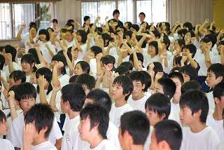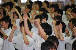 ※8月25日(火)の放課後に行われた全校応援練習の様子です。
