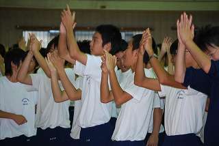 ※8月25日(火)の放課後に行われた全校応援練習の様子です。