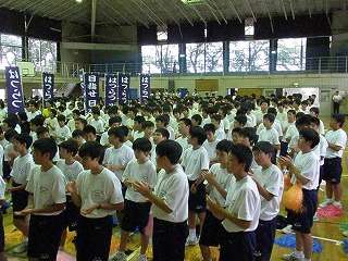 ※8月27日(金)の午後行われた市中陸上大会と市中駅伝競走大会の激励会の様子です。
