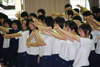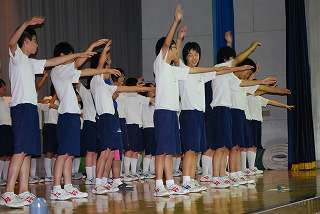 ※8月25日(火)の放課後に行われた全校応援練習の様子です。