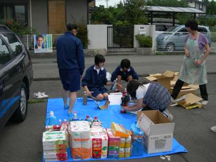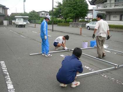 その準備に、北陵中生が、急なお願いにもかかわらず快く参加してくれました。やぐらの組み立ての補助、テント張りなど、設営を中心に、テキパキと作業をしてくれました。男子5名、女子6名、計11名の参加でした。地域の方々は「町内会の方々が徐々に高齢化してきて、力仕事などは大変になってきていますので、中学生のお手伝いはとても助かる」と喜んでくださいました。
