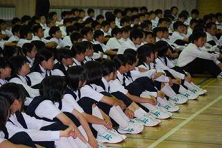 8月19日(水)の朝、1年生のショート集会が行われていました。毎週水曜日は1年生の集会の日です。この日は進行する「学年北陵会」の生徒全員がステージに立って進行していました。遅刻する生徒もいませんでした。頑張りましょう!