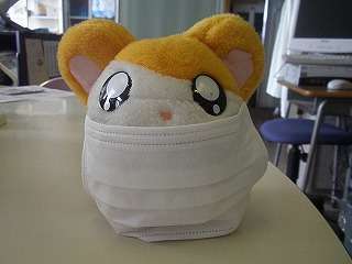 16日(水)まで学校閉鎖措置をとっています。全校の登校は17日(木)からとなりますが、「インフルエンザ蔓延防止」のため、「マスクの持参」をお願いします。予防する、広めないということです。授業中もマスク着用で授業を受けます。19日(土)から始まる「市中新人大会」へ出場できるためにも、お互いのエチケットです。人混みへの外出はしないでください。 ※マスク着用のハム太郎です。