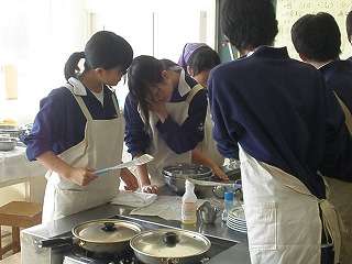 なにやらタマネギを炒める匂い☆2年4組が「ハンバーグ作り」の調理実習中!(2年6組)その7