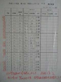 第3回学習コンクールの合格学級は17学級でした☆1年生全学級合格!
