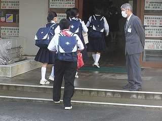 ※9月24日(木)連休明け、元気に登校する生徒達です。