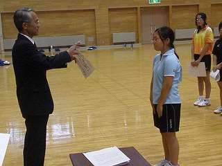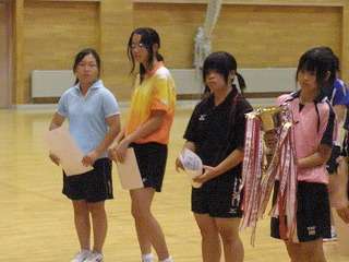 9月19日(土)盛岡体育館で行われた市中新人大会卓球競技。女子団体戦は県大会出場権をかけて河南中との試合。残念ながら2−3で惜敗し、3位になったものの県大会への出場権を逃しました。