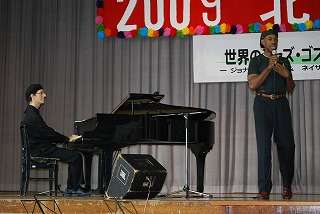 今回は、「世界のジャズ・ゴスペルin北陵中」と命名し実現したコンサート。1時間30分のあっという間のコンサート。ジョナサン・カッツさんの素晴らしいピアノ演奏、ネイザン・イングラムさんのボーカルに引きつけられました。素晴らしい演奏会でした。