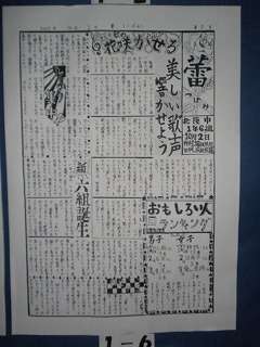 ※1年6組、新聞つくりに取り組んだ、生徒と完成した新聞です。