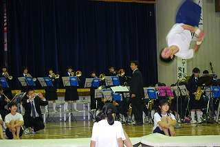 ※10月4日(日)の「吹奏楽部と体操部、新体操部のコラボレーション」の様子です。体操部の演技の様子です。