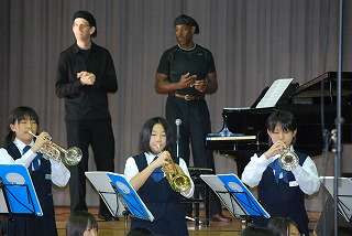 ネイザンさんとジョナサンさんの演奏や歌を聴いて、とても感動しました。バラードとポップスで歌い方を使い分けて、まるで違う人が歌っているようでした。ジョナサンさんのピアノのアップリズムがとても良くて美しかったです。ジョイントでも歌のアドリブとかピアノに合わせてできてとても楽しかったです。またジョイントコンサートをしたいです。(2年女子)