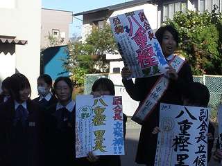 10月15日(木)の朝、生徒会役員選挙立候補者が大きな声で「投票の呼びかけ」が始まりました。昨日よりも各候補者のアピールが大きくなってきました。椅子の上で呼びかける立候補者、大きな横断幕でアピールする候補者、立候補したのですがインフルエンザのため呼びかけができず責任者が大きな声で呼びかけている生徒など、候補者のパフォーマンスも激しくなってきています。元気のいい大きな声で、朝が始まります。10月20日(火)が立合演説会と投票日となっています。