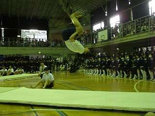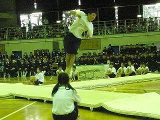 ※10月4日(日)の「吹奏楽部と体操部、新体操部のコラボレーション」の様子です。体操部の演技の様子です。