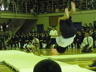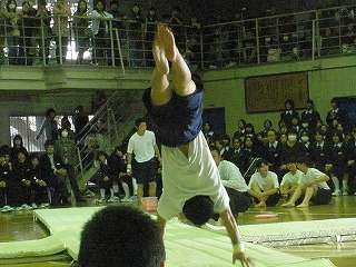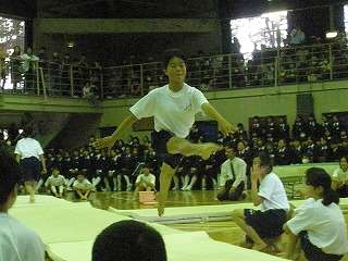 ※10月4日(日)の「吹奏楽部と体操部、新体操部のコラボレーション」の様子です。体操部の演技の様子です。