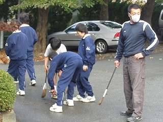 体操部が朝の清掃活動☆落ち葉集めをしました(その2)