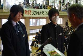 1年生の部の最優秀賞は1年5組の『Let’s search for Tomorrow』でした。優秀賞は1年1組と1年2組、優良賞は1年3組と1年6組、努力賞は1年4組でした。みんな頑張りました。指揮者賞は、1年6組の三浦くんでした。